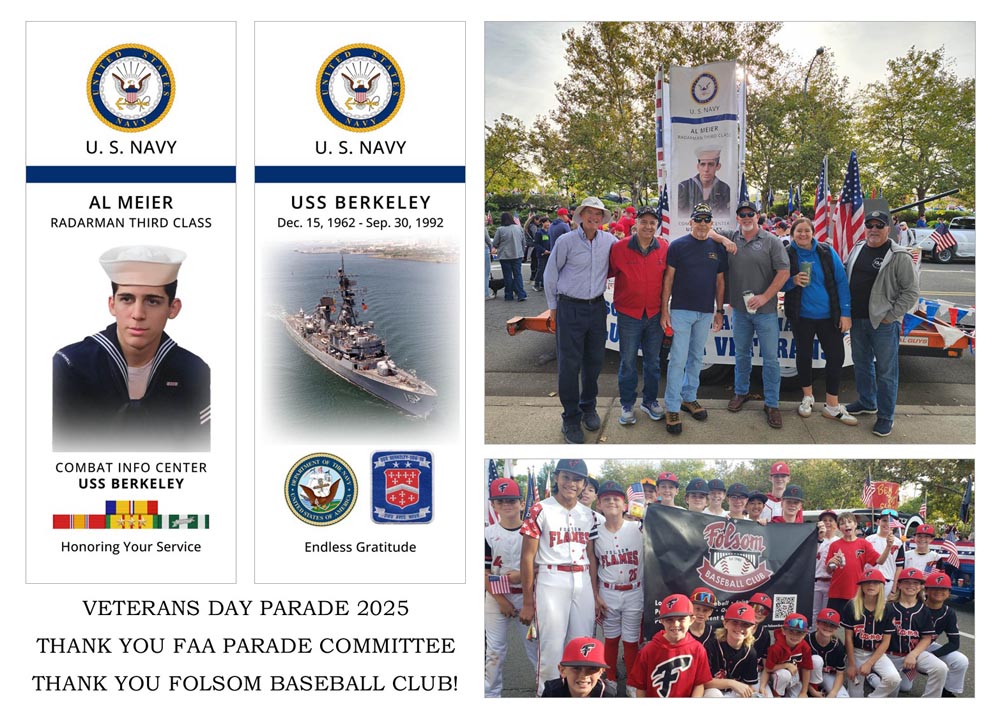 The Folsom Athletic Association honors U.S. Navy (retired), Radarman Third Class, Al Meier